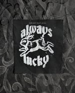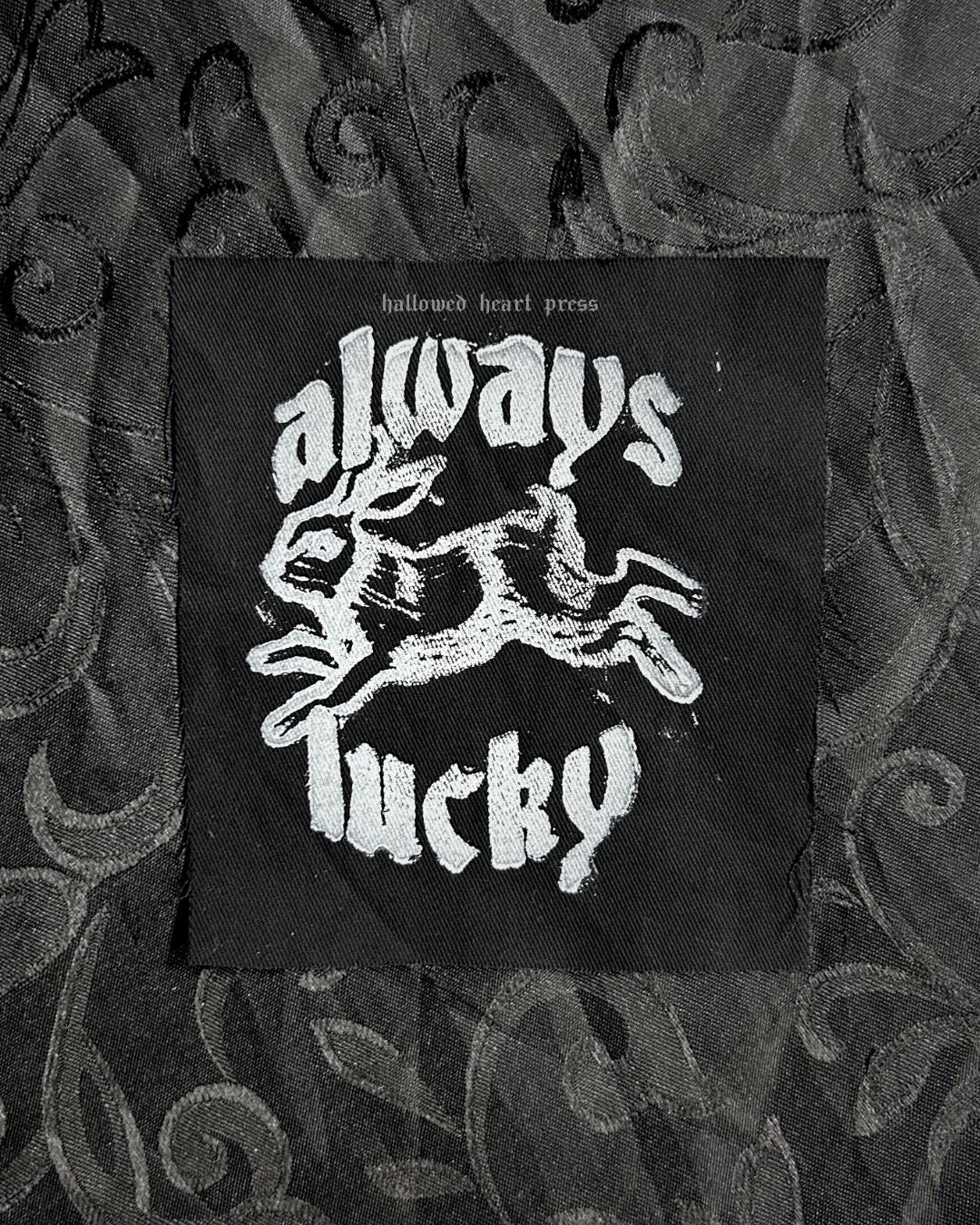 always lucky bunny, rabbit original design sew-on patch on upcycled fabric. approx. 3in x 3in. this item is hand-inked, hand-carved, and hand-printed! therefore, the item may vary slightly from the item pictured, but your piece will be as close to the item pictured as humanly possible. i do not accept refunds on these items due to dissatisfaction of the print. please feel free to message me with further questions <3