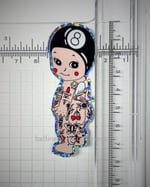 tattooed kewpie angel original design sticker with glitter. approx 3in tall. waterproof vinyl sticker.